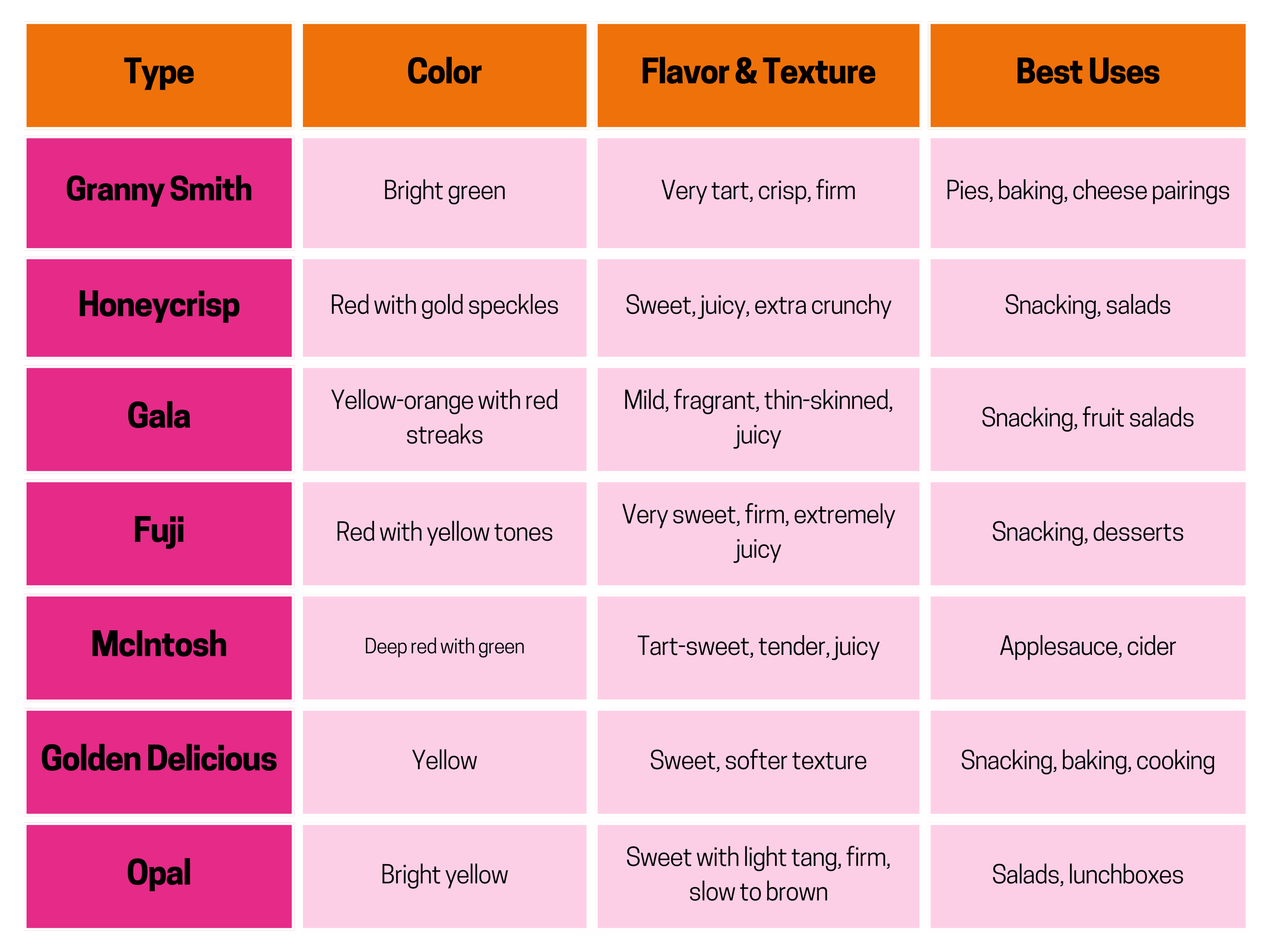 Fall has officially begun! And for me, nothing screams fall more than apples! They show up in lunchboxes, pies, ciders, sauces—you name it. And with thousands of varieties grown all over the world, there’s truly an apple for every mood and every recipe. The tricky part? Figuring out which one to grab at the store or farmers market.